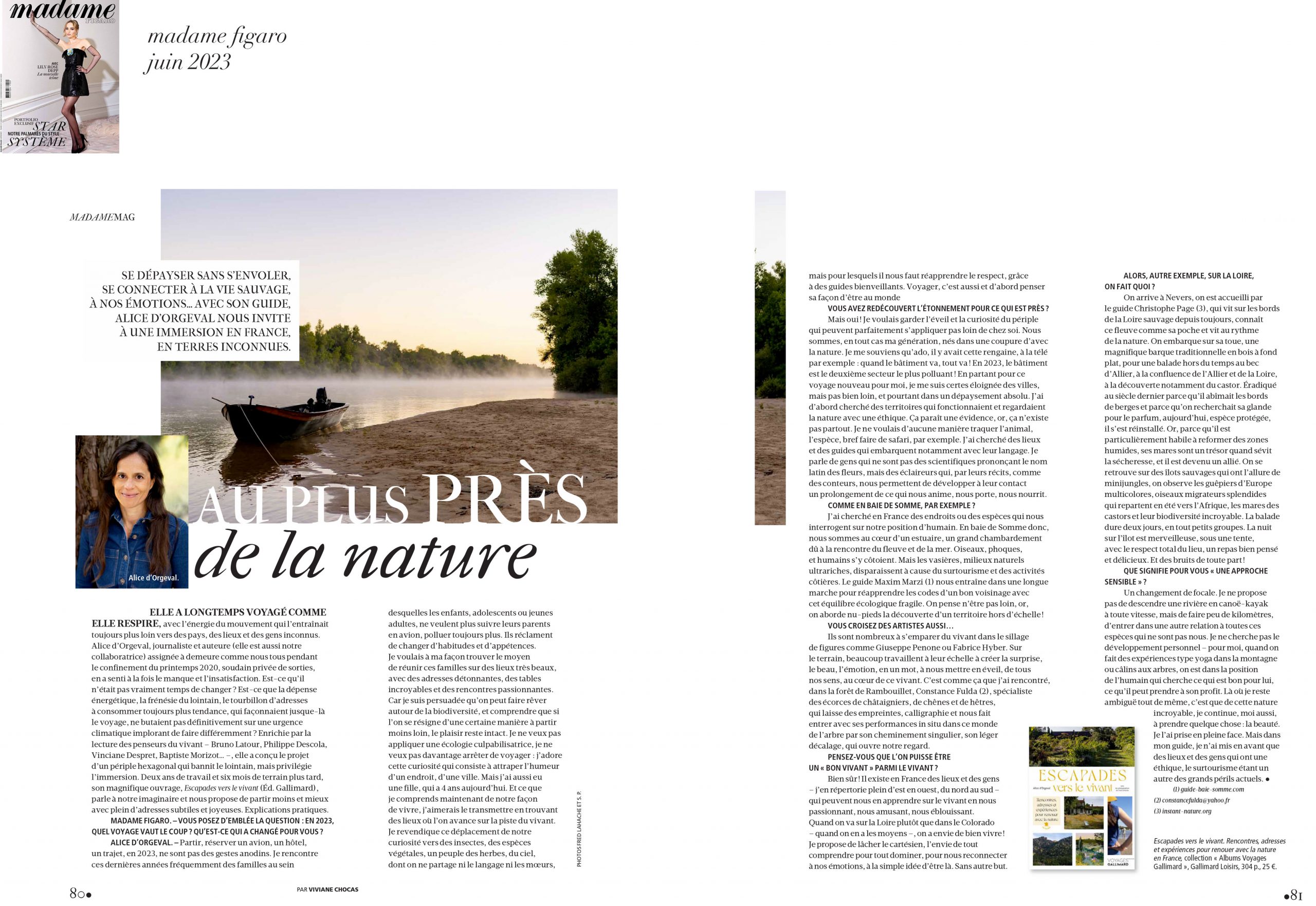 « Escapades vers le vivant » chroniqué dans Madame Figaro